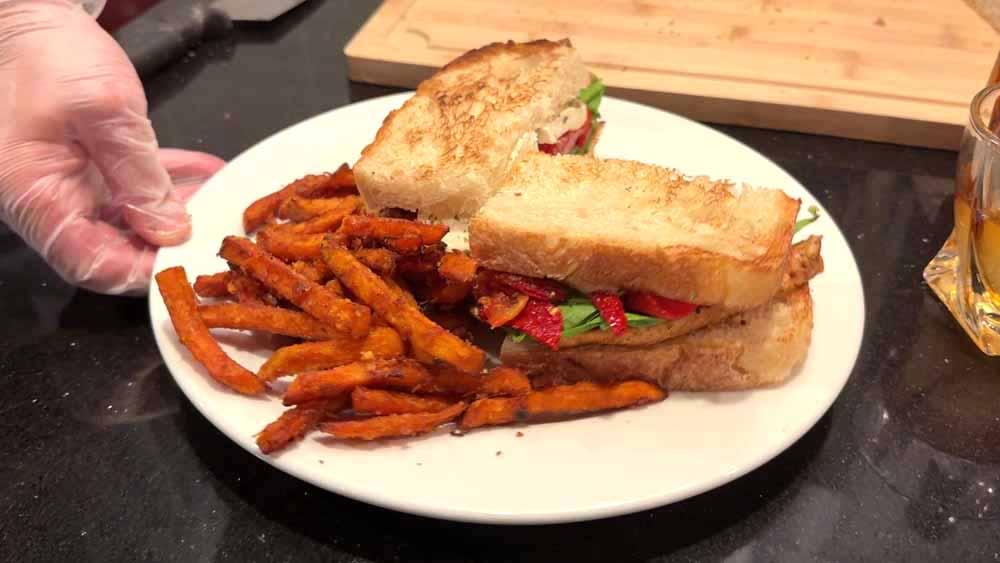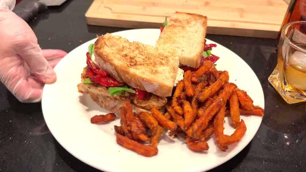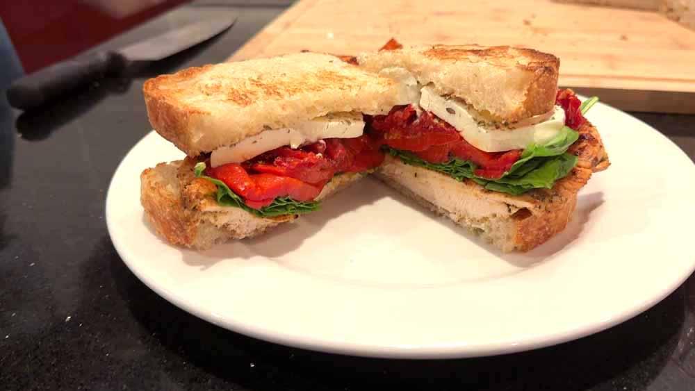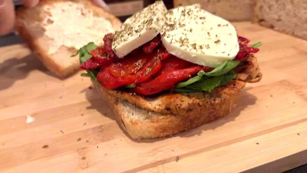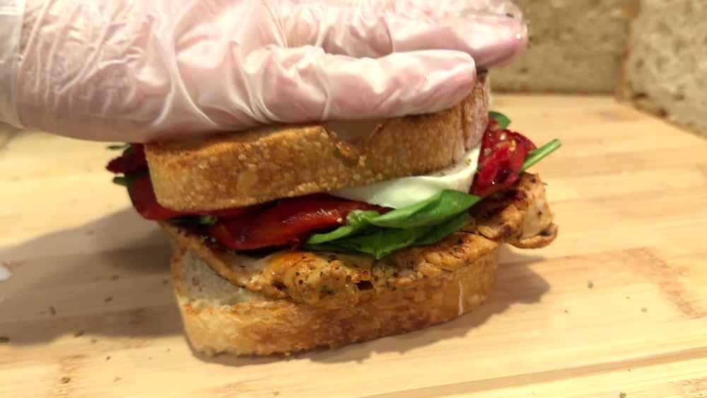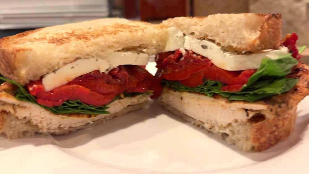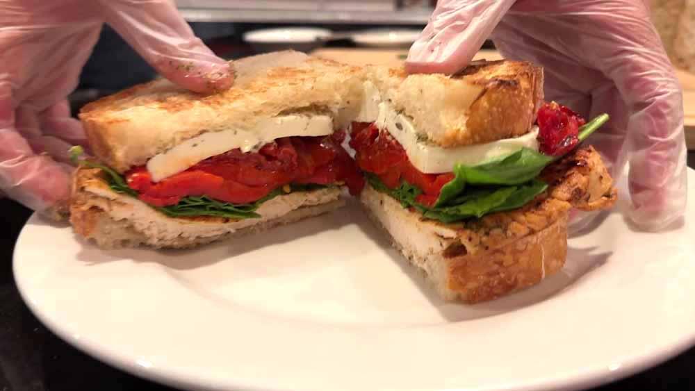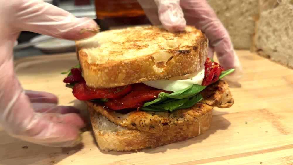 Grilled chicken meets creamy garlic aioli, fresh baby spinach, roasted red peppers, sun dried tomato, and molten mozzarella—stacked on toasted sourdough and paired with a pour of Woodford Reserve Straight Kentucky Bourbon. This video takes you behind the scenes at Heritage, where every sandwich is built with intention and flavor. Watch the craft. Taste the story.