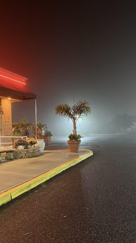 It was the kind of night that makes you slow down. A few guests lingered longer than usual, sipping coffee and watching the mist swirl under the streetlamp. Some snapped photos. Others just sat quietly, soaking it in.